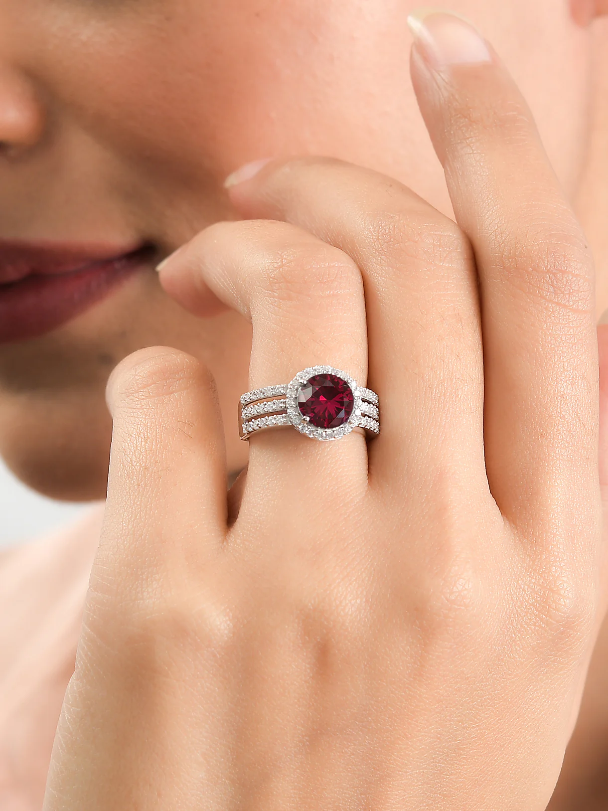 2 Carat Ruby Solitaire Band Ring In Silver